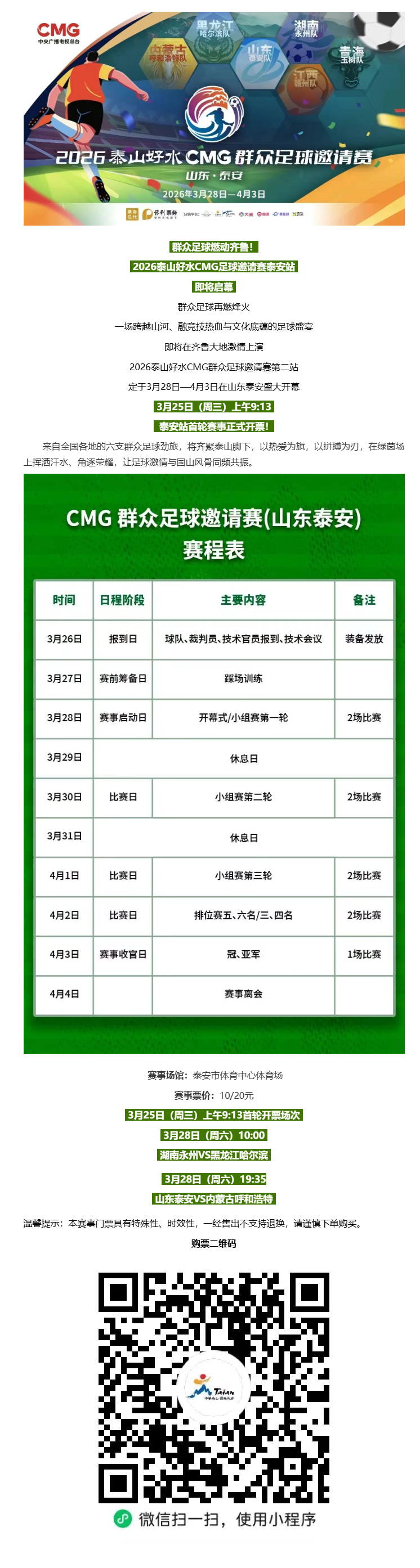 抢票抢票!六强聚首泰山,CMG群众足球赛泰安站热血启幕!