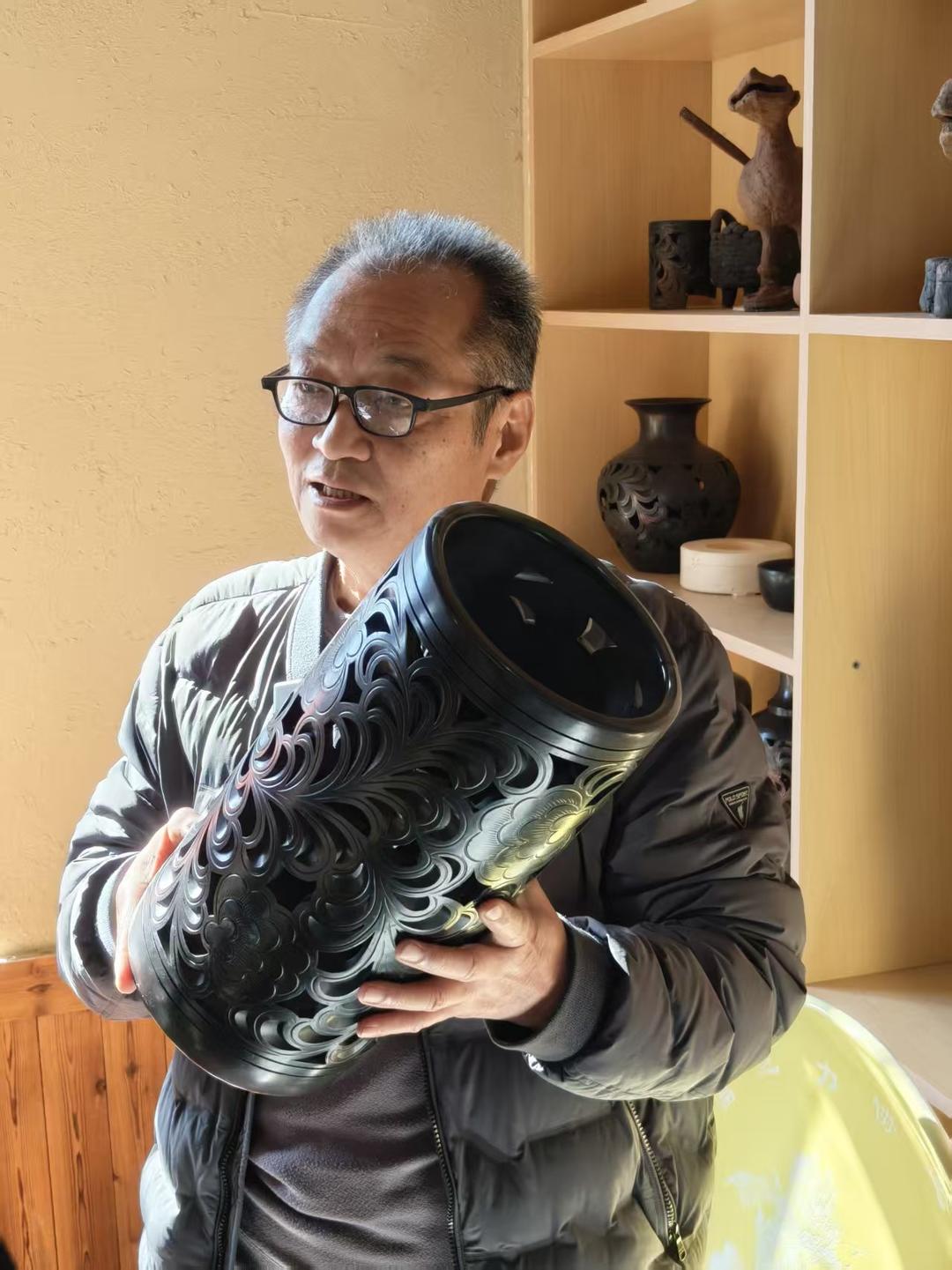 人多了,路就宽了。吕庄行政村党支部书记刘宜存算了一笔账:“跟着王老师学手艺的村民越来越多,我们把黑陶和农文旅产业结合,作品从几十元到上百元不等,销量特别可观。”
