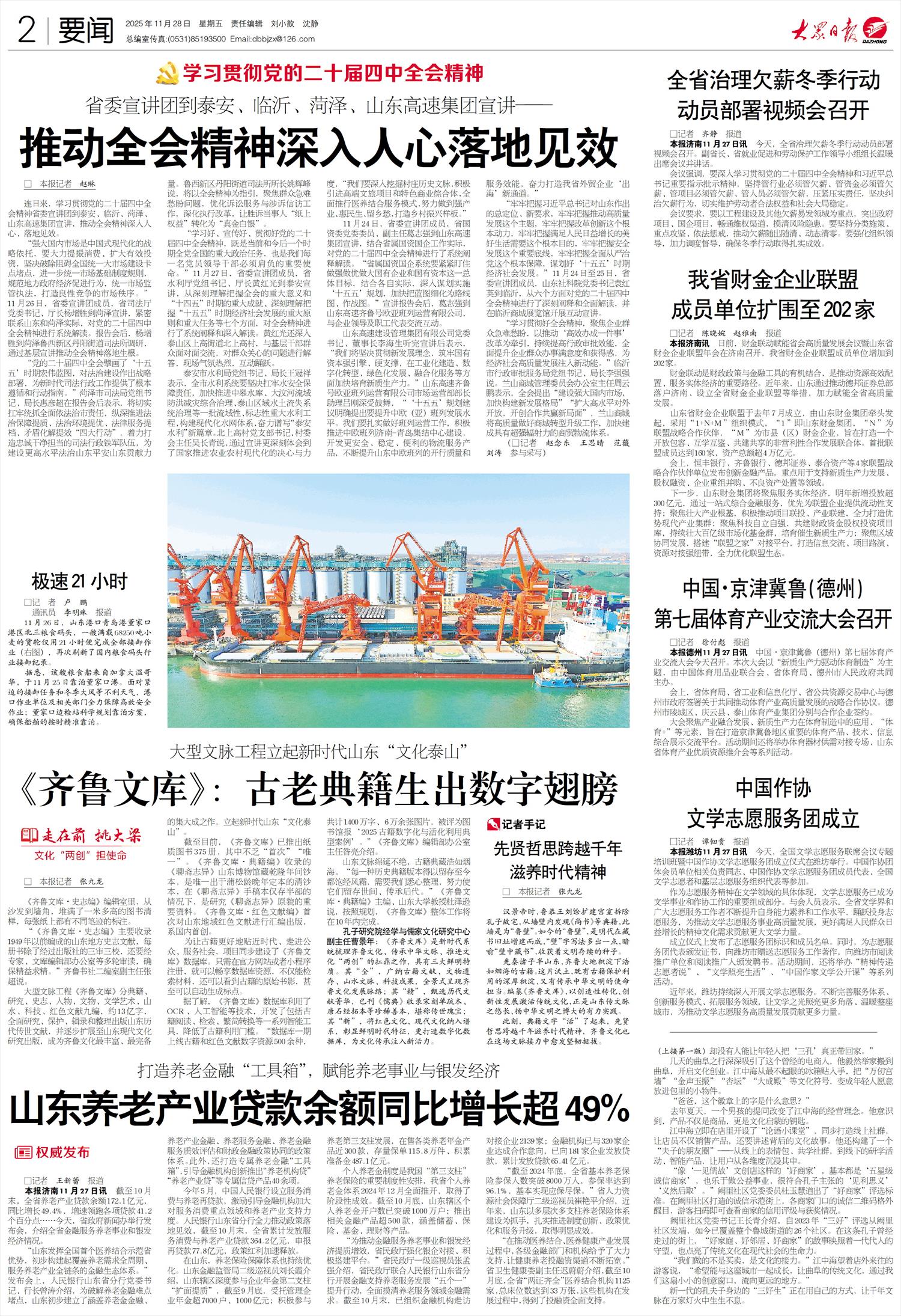 孔子研究院经学与儒家文化研究中心副主任曹景年:《齐鲁文库》是新时代系统梳理齐鲁文化、传承中华文脉、推进文化“两创”的扛鼎之作,具有三大鲜明特质。其“全”,广纳古籍文献、文物遗存、山水文脉、科技成果,全景式呈现齐鲁文化发展脉络;其“精”,甄选历代文献菁华,已刊《儒典》收录宋刻单疏本、唐石经拓本等珍稀善本,堪称传世瑰宝;其“新”,将红色文化、现代文化纳入谱系,彰显鲜明时代特征,更打造数字化数据库,为文化传承注入新活力。