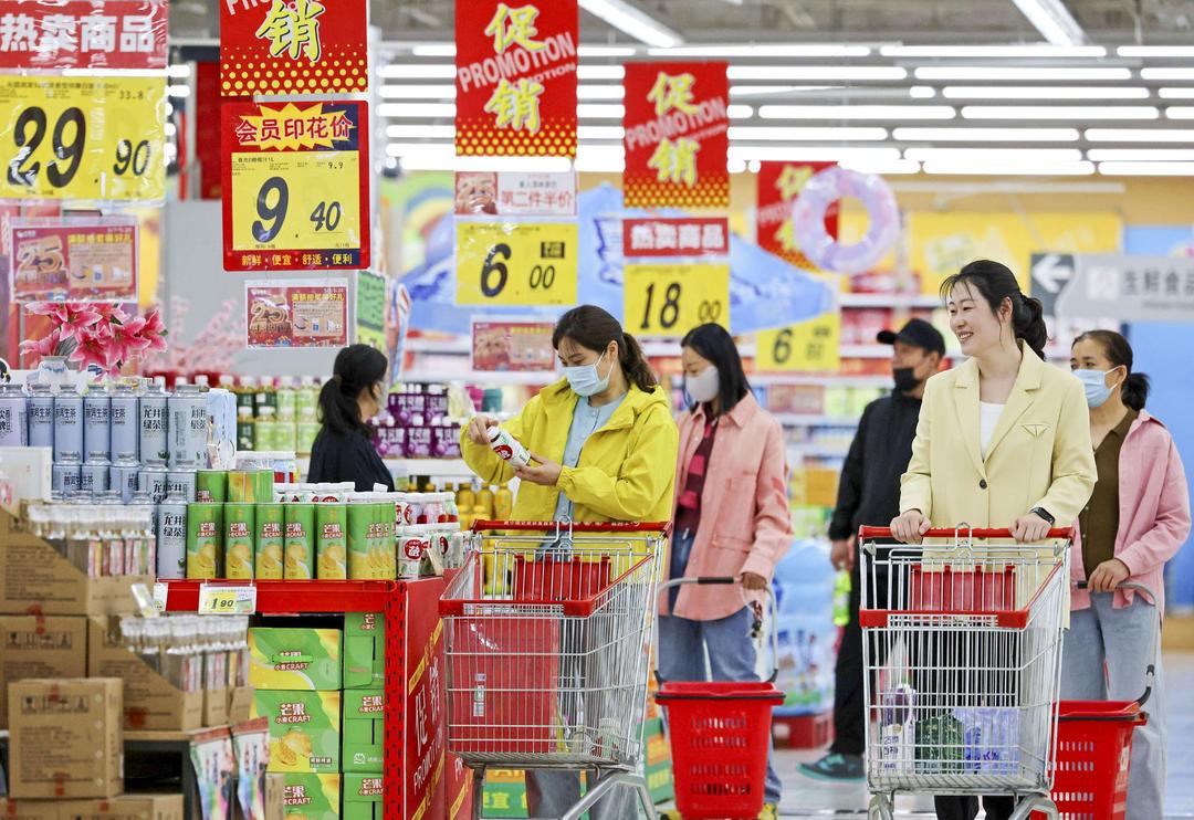 资料图:消费者在山东省枣庄市一家超市选购商品。(新华社发)