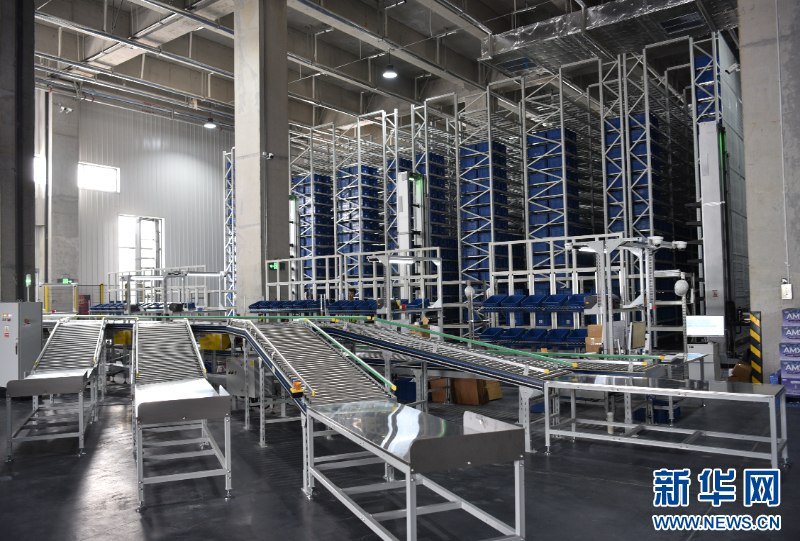 中国北方生活消费品(济南)分拨中心自动化分拣系统(资料图)。新华网发