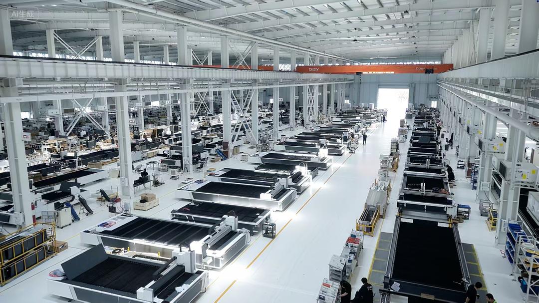 济南市历城区邦德激光全球总部基地内,7.4万平方米的智能车间里,机器轰鸣昼夜不停。行业内首条激光设备流水线高速运转,最快每7分钟就有一台设备下线。