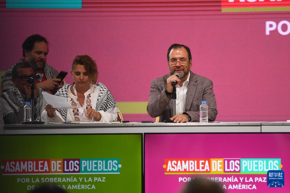 12月9日,委内瑞拉外交部长希尔(右)在首都加拉加斯举行的“美洲主权与和平人民大会”开幕式上发表讲话。新华社发(马科斯·萨尔加多摄)