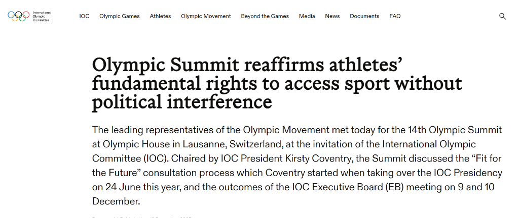 奥林匹克峰会是奥林匹克运动的高级别年度会议,与会代表围绕重大热点问题交流,为国际奥委会决策提供建议。今年的奥林匹克峰会涵盖米兰-科尔蒂纳冬奥会、达喀尔青奥会、洛杉矶奥运会、反兴奋剂工作等议题。