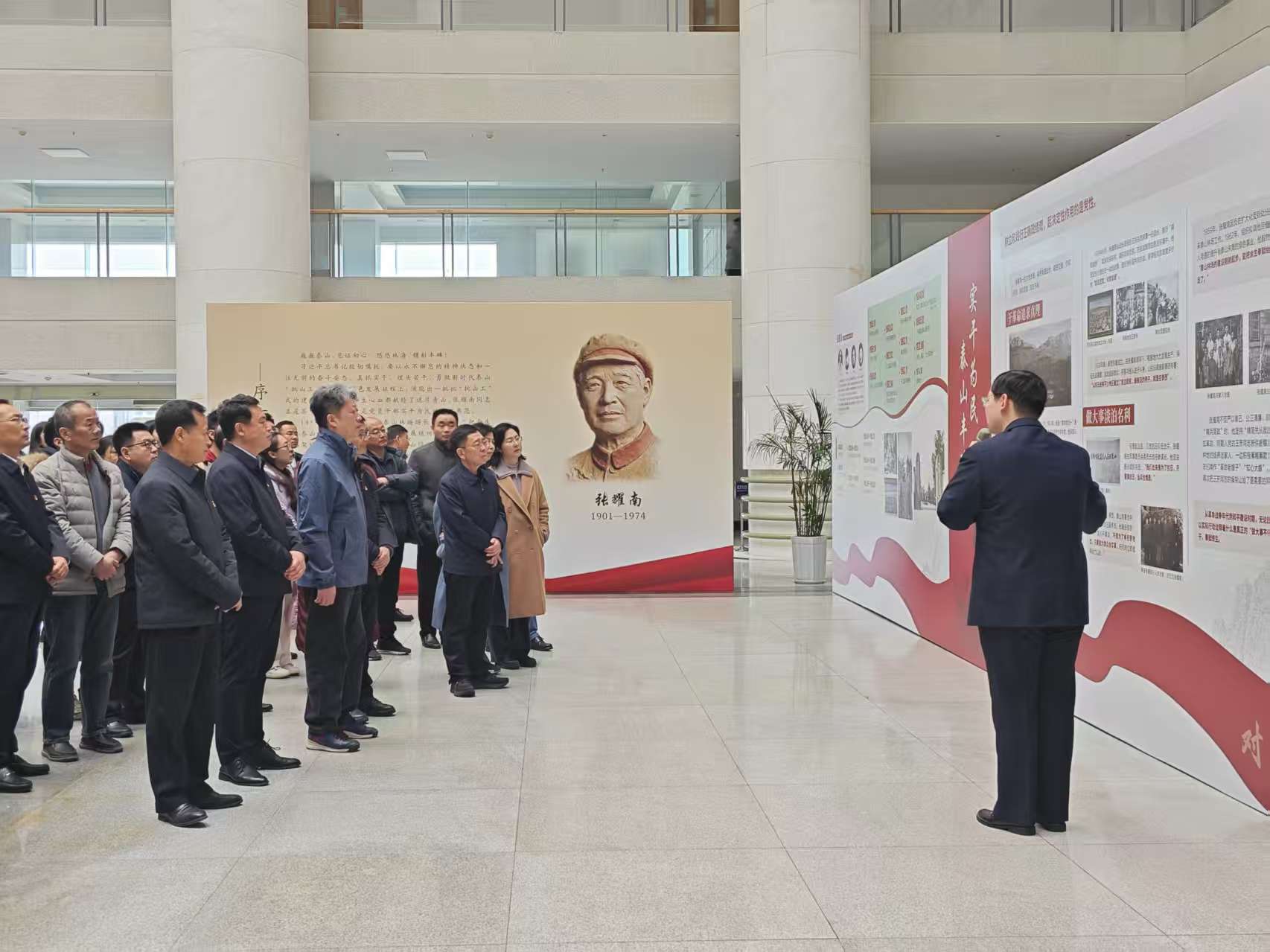 在市政大楼,全体党员循着讲解员的指引,认真参观学习张耀南同志先进事迹展,接受深刻的党性教育与精神洗礼。张耀南同志1939年加入中国共产党,早年投身革命洪流,组织抗日起义、创建革命根据地,曾任长清县抗日民主政府首任县长、泰西专署专员。新中国成立后,他先后担任山东省卫生厅、林业厅厅长,泰安专署副专员,始终坚守为民初心、恪尽职守。他不计个人荣辱得失,主动扎根泰山担任林场场长,毅然婉拒回省复职的机会,十余年如一日带领职工植树护林、深耕泰山建设,以毕生坚守践行了实干为民、淡泊名利的共产党人初心使命,成为泰安广大党员干部心中不朽的精神标杆。