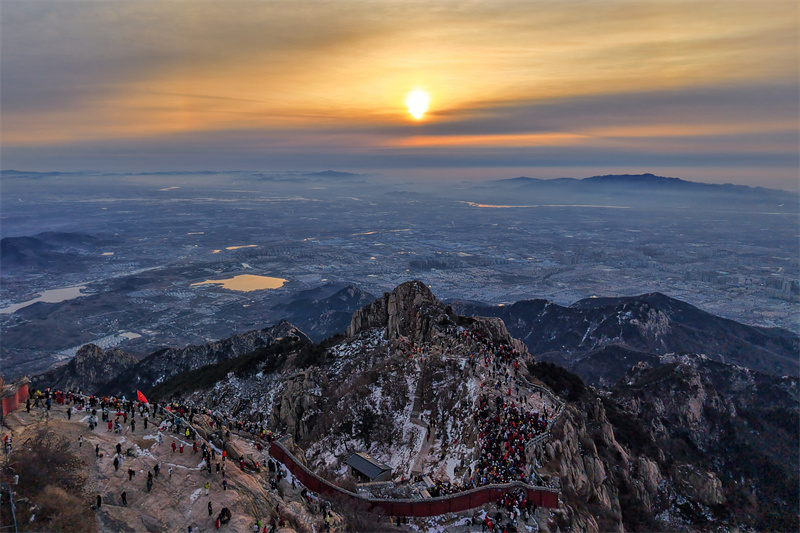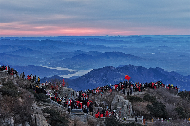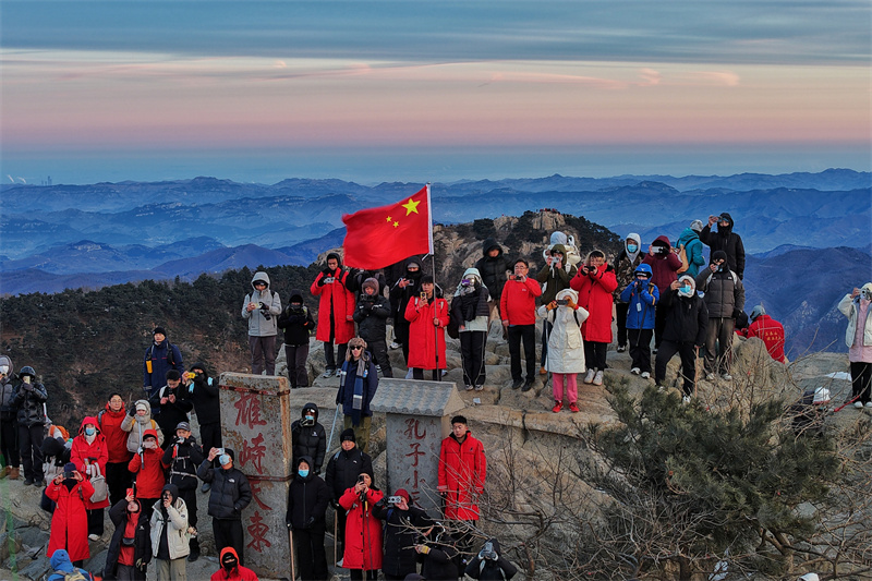 2026年第一天,泰山之巅,朝阳、国旗与笑脸交织成最动人的画面,共同绘就了泰山之巅最温暖的新年图景。