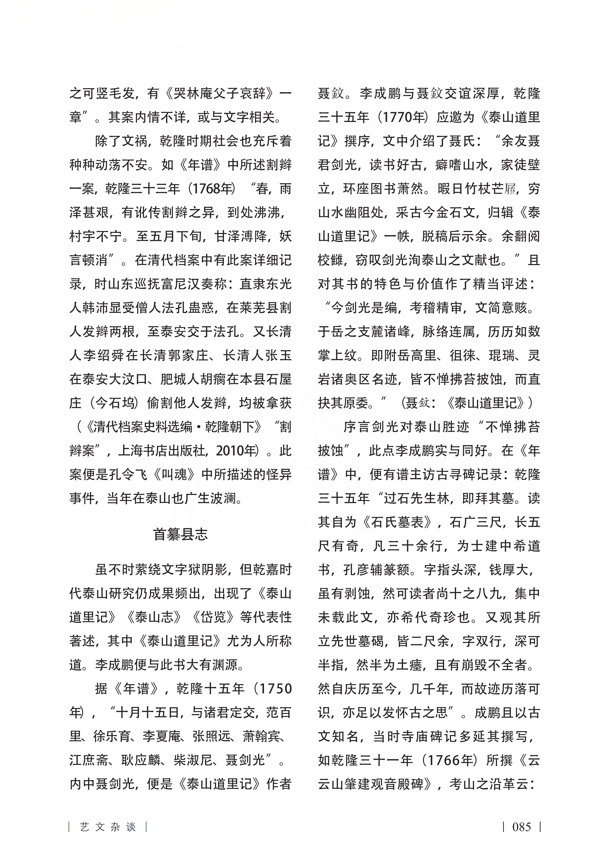 李成鹏年谱中的“乾隆泰山”